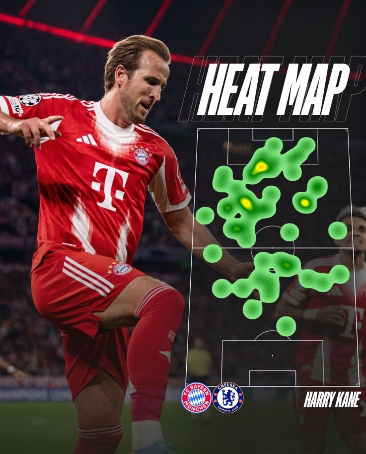 拜仁官推曬出本場(chǎng)比賽凱恩熱點(diǎn)圖,球場(chǎng)覆蓋范圍極大,官推配文寫(xiě)道:“不僅僅是一名前鋒!”