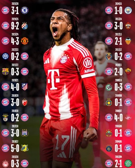 拜仁已經(jīng)連續22個(gè)賽季在歐冠首輪比賽取勝,他們面對的對手包括了巴薩、國米、曼城、曼聯(lián)等隊。上賽季,拜仁在歐冠聯(lián)賽階段首輪比賽曾以9-2的比分血洗薩格勒布迪納摩。