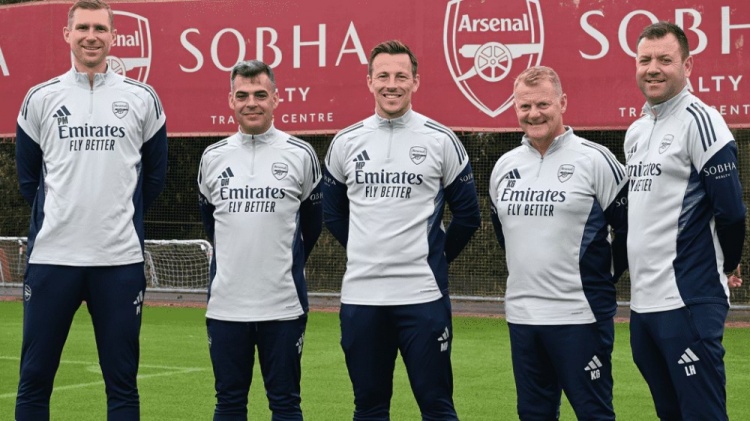 9月19日訊 阿森納官方消息,大衛-霍斯曼(左起第二)出任俱樂(lè )部職業(yè)發(fā)展階段精英球員發(fā)展教練。