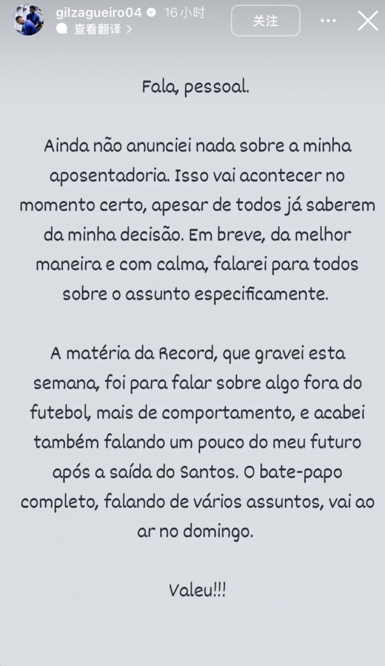昨日吉爾通過(guò)個(gè)人ins發(fā)表了一段聲明,表示自己目前還沒(méi)宣布退役,會(huì )在合適的時(shí)間再公布。吉爾在聲明中寫(xiě)道: