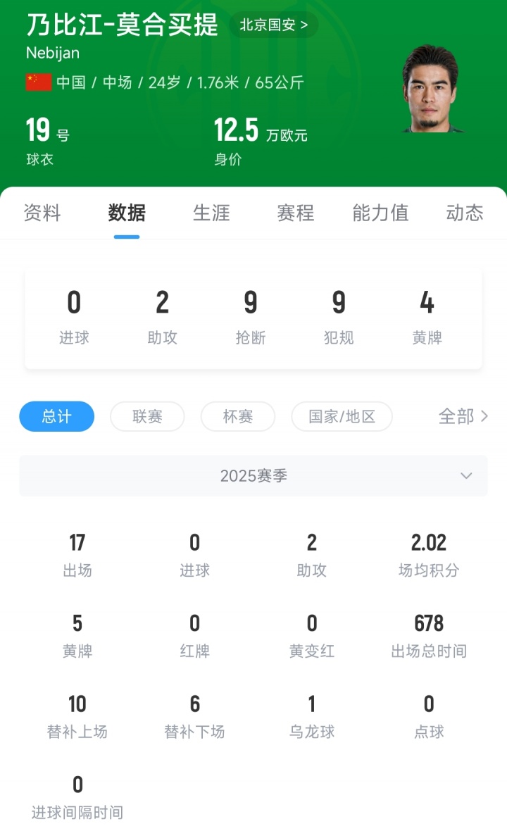 09月20日訊 北京國安公布球員傷情公告,球隊中場(chǎng)球員乃比江大腿肌肉受傷,康復時(shí)間不低于4周。