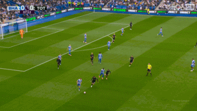 傷停補時(shí)3分鐘。上半場(chǎng)比賽結束,布萊頓2-1熱刺。
