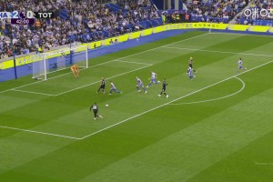 第80分鐘,三笘薰反越位成功,他的橫傳穿越熱刺整條后防線(xiàn),隊友包抄稍慢錯失良機?!?/p>