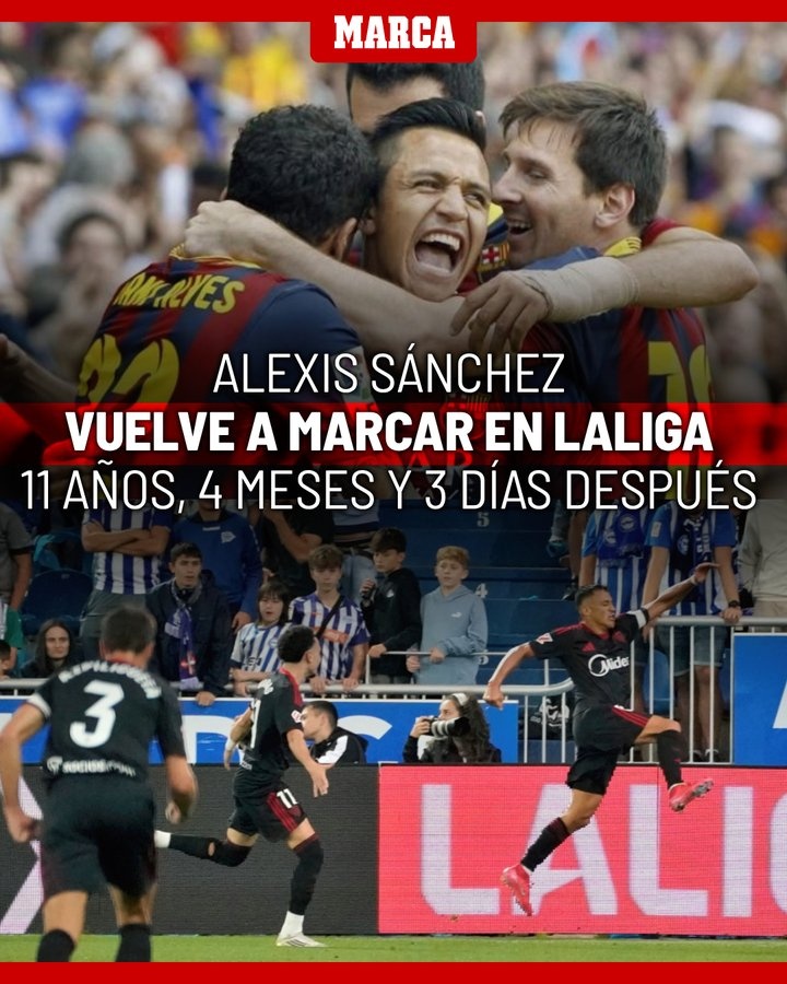 《馬卡報》統計表明,桑切斯時(shí)隔11年4個(gè)月零3天再一次在西甲破門(mén),他上一次在西甲進(jìn)球是2013-14賽季代表巴薩攻破馬競球門(mén)。
