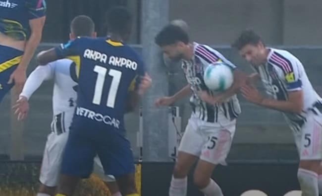 “馬里奧根本無(wú)法預判球的落點(diǎn)。從他的身體姿勢來(lái)看,他閉上了眼睛,而且手臂有向內收縮的趨勢,這和我們在博洛尼亞比賽中看到的手球完全不同?!?/p>