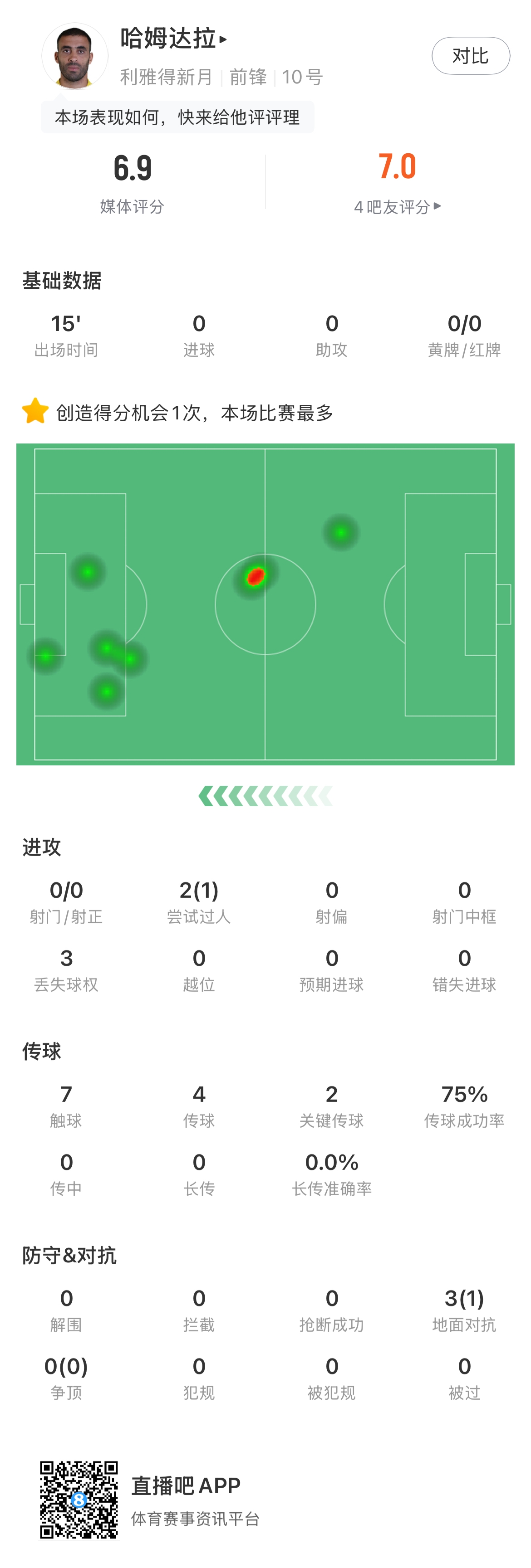 07月06日訊 據沙特媒體《利雅得報》獨家披露,從世俱杯出局后,利雅得新月已經(jīng)與哈姆達拉達成協(xié)議,提前終止租借協(xié)議,將他從球隊名單中除名。這意味著(zhù)哈姆達拉的新月生涯只代表球隊出戰15分鐘。