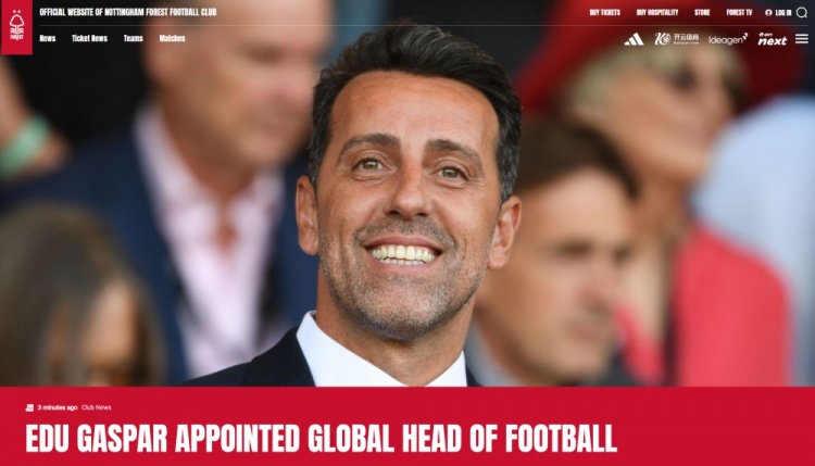 7月8日訊 諾丁漢森林官宣,任命埃杜為全球足球主管,這一新設立的職位將負責監督俱樂(lè )部的足球運營(yíng)事務(wù)。