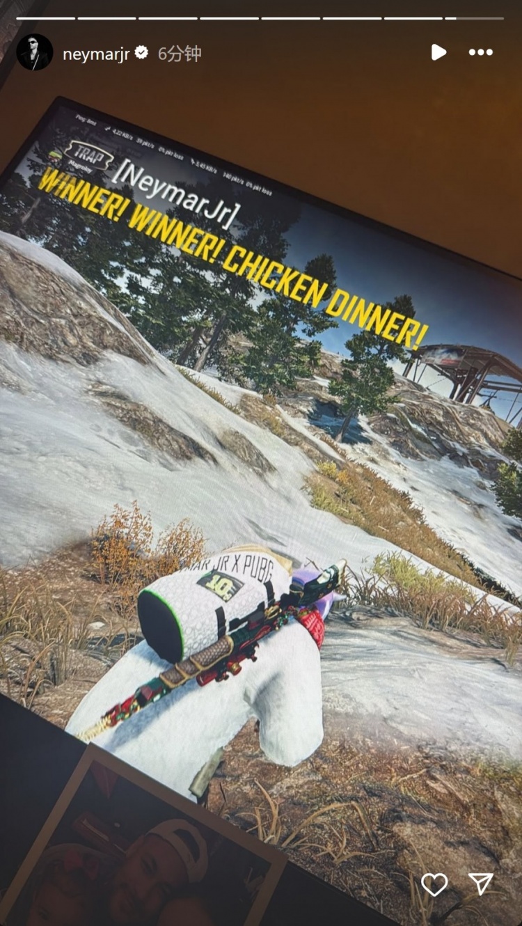 7月8日訊 內馬爾更新社媒動(dòng)態(tài),曬出絕地求生游戲“吃雞”的照片。