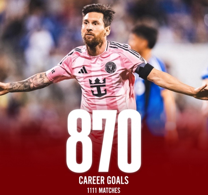 梅西10分鐘內梅開(kāi)二度,生涯進(jìn)球總數達870球,所用場(chǎng)次1111場(chǎng)。