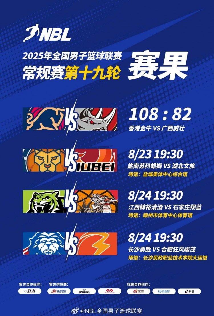 【戰報】2025年NBL常規賽第19輪昨日先賽一場(chǎng)。