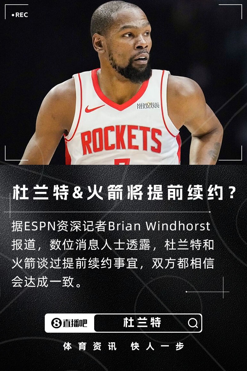 08月23日訊 ESPN資深記者Brian Windhorst近日撰文,談到杜蘭特和火箭提前續約的前景。具體如下: