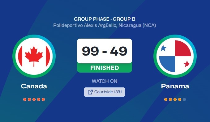 8月24日訊 今天結束的一場(chǎng)男籃美洲杯小組賽,加拿大男籃99比49大勝巴拿馬男籃50分。