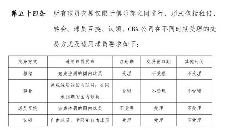 當然,8月29號只是轉會(huì )操作的最后期限,CBA中的交易方式除了轉會(huì )之外,還有租借、球員互換和認領(lǐng)。