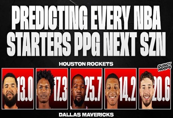 8月28日訊 近日美媒Quincy Hoops預測了25-26賽季休斯敦火箭隊首發(fā)陣容的場(chǎng)均得分,具體如下。