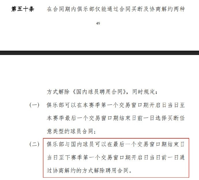 但這個(gè)協(xié)商解約就真的是商量著(zhù)來(lái)了(圖4),比如規定一上來(lái)就寫(xiě)了,“俱樂(lè )部與國內球員可自行約定剩余工資、培養費(最多收取 50%)及 CBA 聯(lián)賽相關(guān)注冊權利等”。