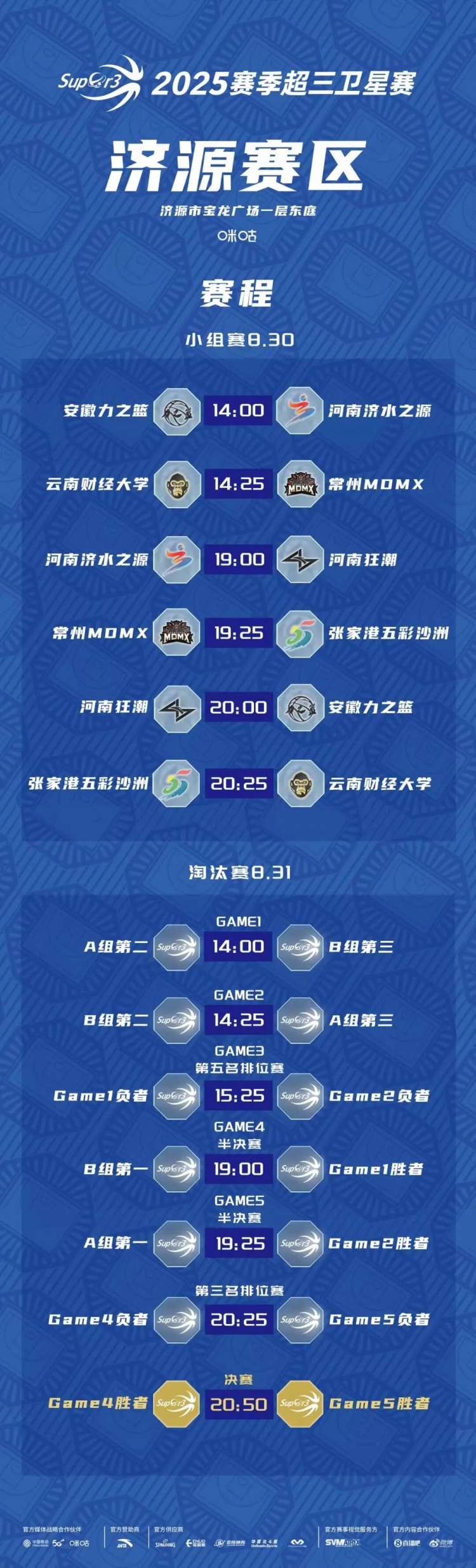 2025賽季中國男子三人籃球超級聯(lián)賽衛星賽(簡(jiǎn)稱(chēng)“超三衛星賽”)第2站比賽賽程發(fā)布!本站比賽將于8月30日-8月31日在濟源賽區繼續進(jìn)行,同期還將舉辦超三聯(lián)賽無(wú)錫第二站大區賽。