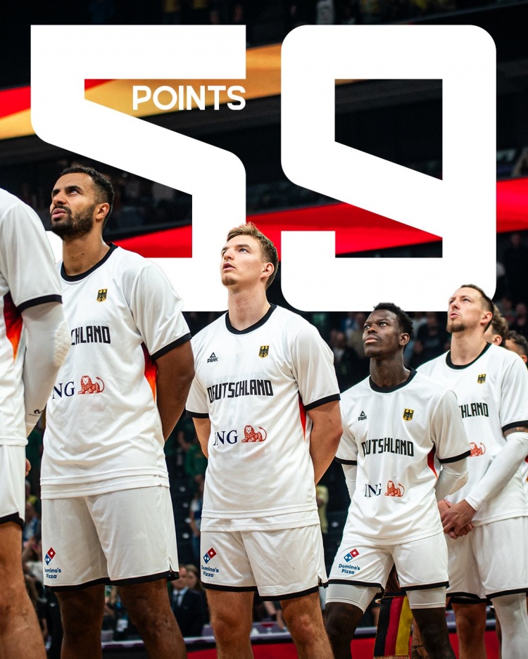 8月29日訊 男籃歐錦賽小組賽,德國105-83大勝瑞典。德國隊首節砍下27分、第二節拿到32分,上半場(chǎng)拿到了59分。這一分數也是德國隊在歐錦賽比賽中的球隊歷史半場(chǎng)最高得分!