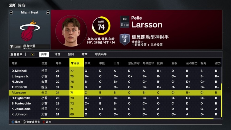8月30日訊 NBA2K26各隊球員能力值出爐,其中熱火隊球員詳細能力值如下: