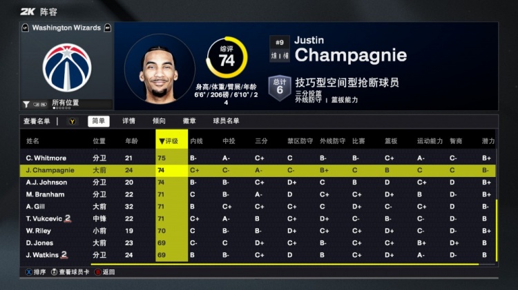 8月30日訊 今日NBA2K26正式發(fā)布,奇才隊球員能力值如下: