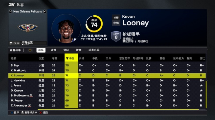 8月30日訊 今日NBA2K26正式發(fā)布,鵜鶘隊球員能力值如下: