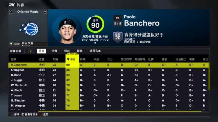 8月30日訊 今日NBA 2K26正式發(fā)布,魔術(shù)隊球員能力值如下: