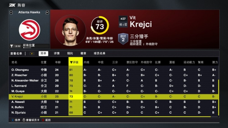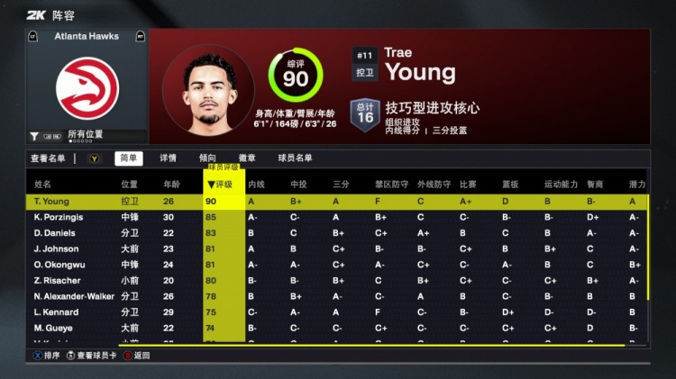 8月30日訊 今日NBA2K26正式發(fā)布,老鷹隊球員能力值如下: