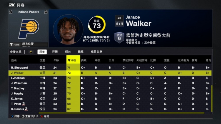 8月30日訊 今日NBA 2K26正式發(fā)布,步行者隊球員能力值如下: