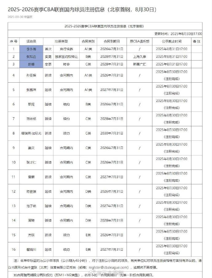 @三土帶刺 在個(gè)人微博上寫(xiě)道:“北京首鋼25-26賽季目前的本土陣容,曾凡博將會(huì )在31日預注冊。