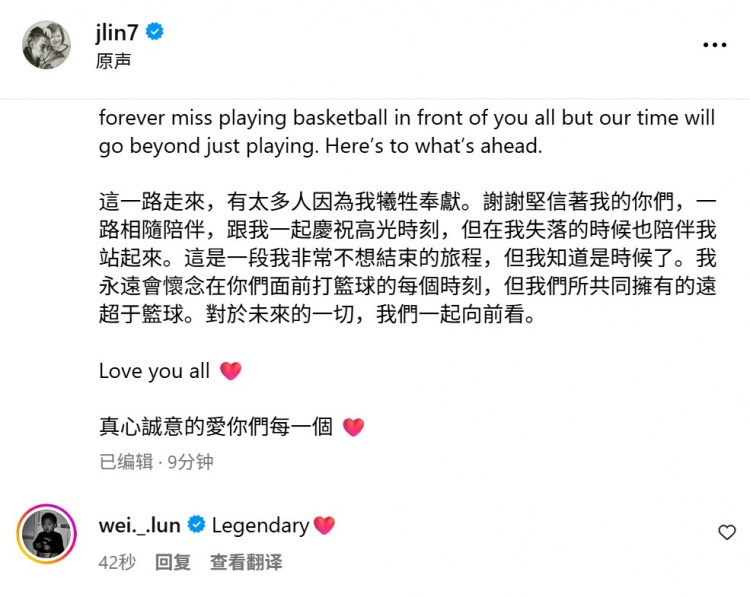 8月31日訊 林書(shū)豪更新社交媒體,宣布退役,結束了15年職業(yè)生涯。