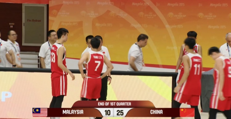 第一節,中國男籃U16攻防兩端壓制對手,單節以25-10領(lǐng)先對手15分,中國隊中鋒張子一獨得7分7籃板。
