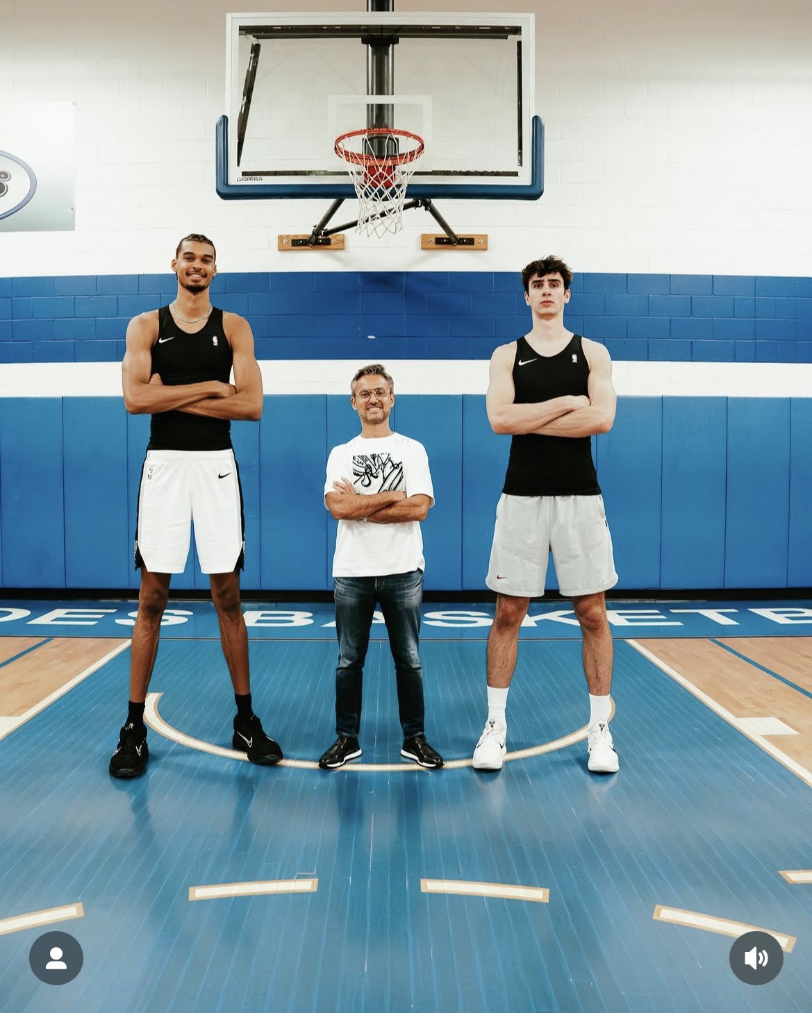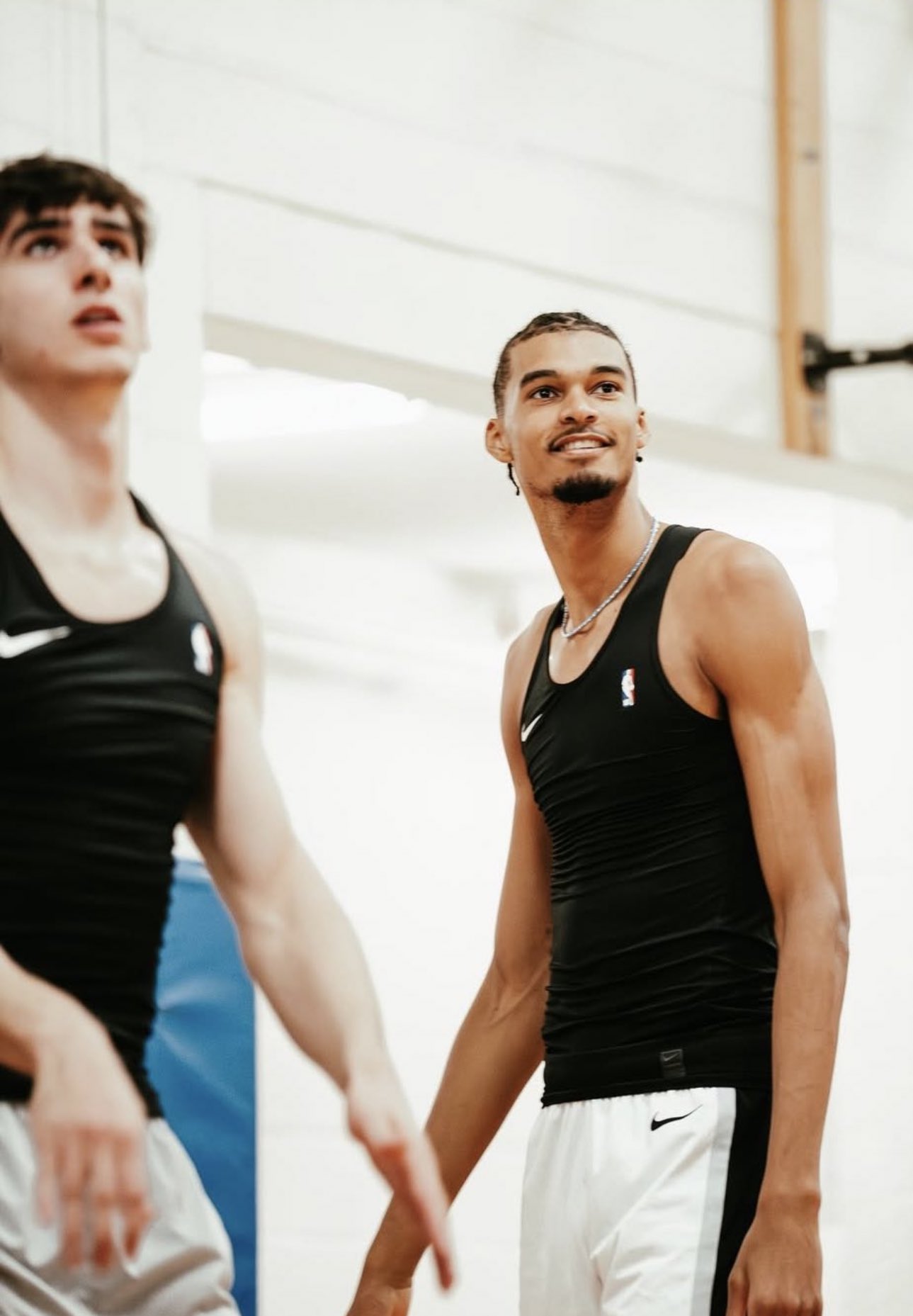 文班和Maxime Raynaud一同訓練,后者是今年參選的新秀中鋒