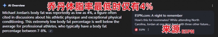 邁克爾-喬丹在其職業(yè)生涯中以極低的體脂率著(zhù)稱(chēng),據不同來(lái)源報道,他的體脂率曾低至4%或5%左右。