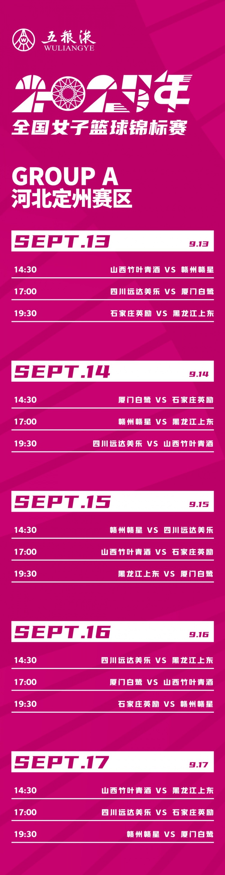 五糧液2025年全國女子籃球錦標賽由中國籃球協(xié)會(huì )主辦、深籃體育(北京)有限公司作為辦賽機構,將于9月10日至9月21日分別在湖北省武漢市、河北省定州市、浙江省諸暨市舉辦。