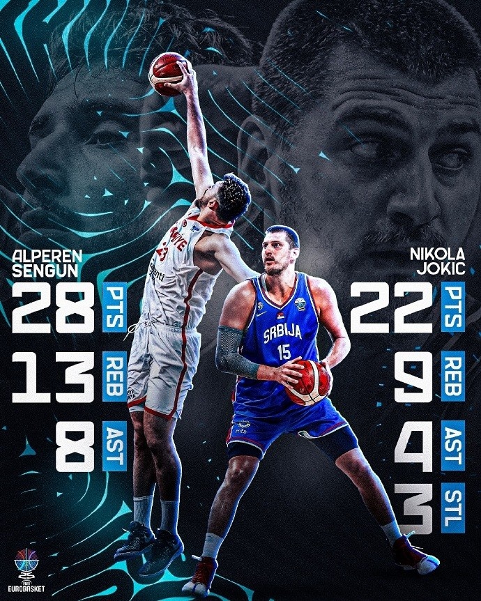 在歐錦賽乏味的小組賽征程中,今天凌晨終于又出現了一場(chǎng)拳拳到肉的比賽:此前都4場(chǎng)全勝的塞爾維亞和土耳其在小組賽收官戰相遇,而約基奇和申京的直接對位更是成為了比賽的最大看點(diǎn)。
