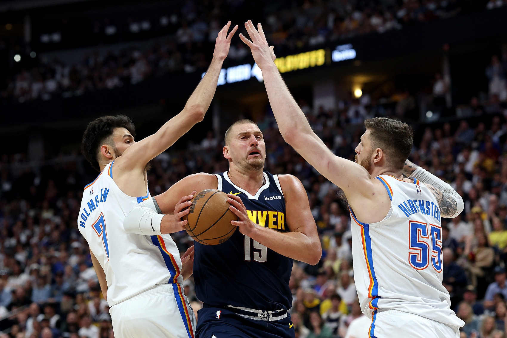 掘金常規賽籃下得分高居聯(lián)盟榜首,卻在半決賽的八支球隊中墊底。這種斷崖式下滑的根源,是他們遭遇了當今聯(lián)盟最具統治力的防守體系。頂級防守的標志是能遏制對手的招牌武器,但雷霆對掘金所做的遠超于此:他們將一支頂級進(jìn)攻球隊的殺手锏直接打成了軟肋。