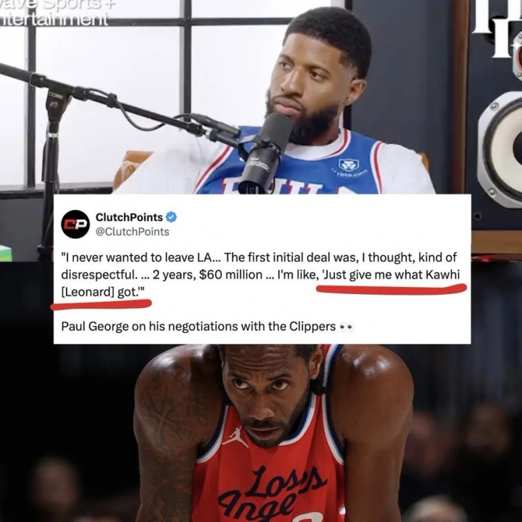 此前,萊昂納德從快船得到了一份3年1.5億美元的合同。據當時(shí)報道喬治想要同樣的合同,最終喬治選擇4年2.12億簽約76人。
