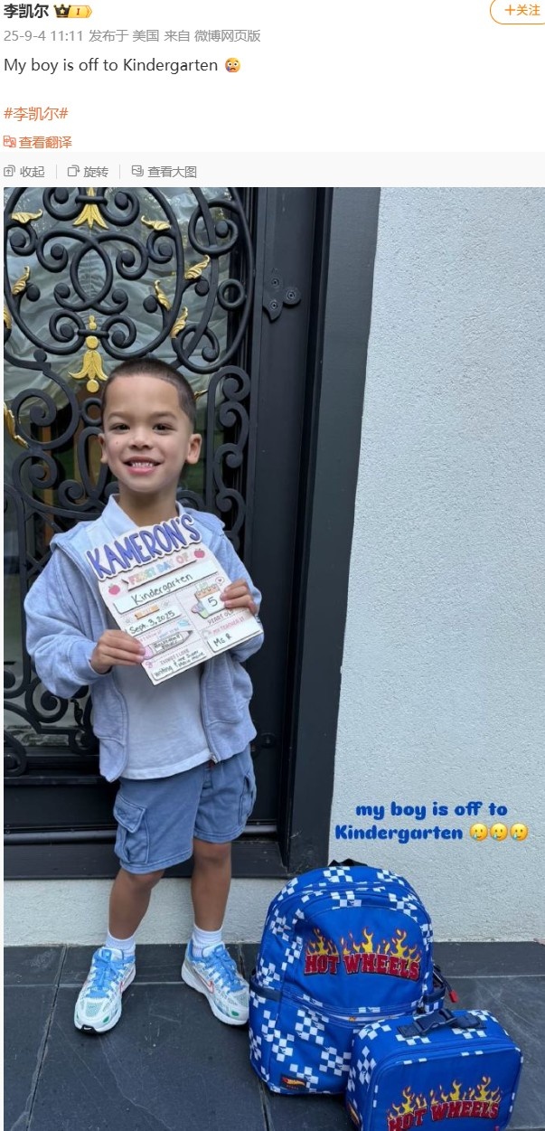 “我的孩子要上幼兒園了!”李凱爾如此寫(xiě)道。