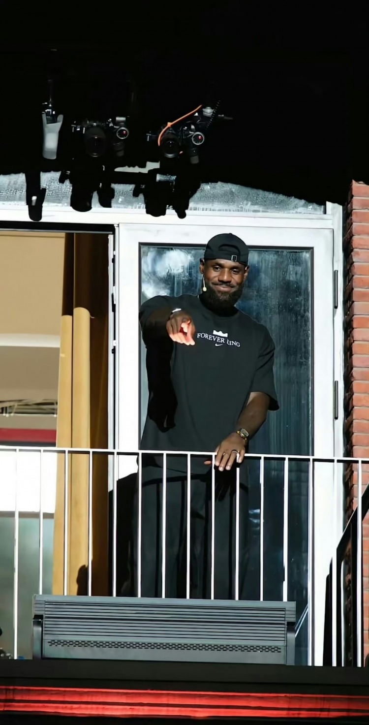 在上海站耐克官方舉行的“Forever King”活動(dòng)開(kāi)始前,詹姆斯在4樓的陽(yáng)臺上張開(kāi)雙臂向全場(chǎng)球迷問(wèn)好。