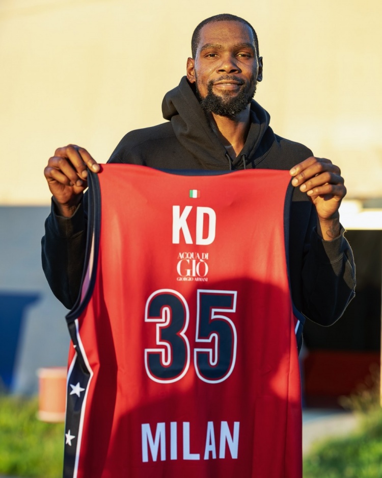 9月4日訊 杜蘭特近日到訪(fǎng)意大利米蘭,還前往了當地的米蘭阿瑪尼隊參觀(guān),還獲贈了米蘭阿瑪尼為他定制的35號去球衣。