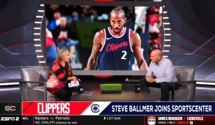 9月5日訊 今早,快船老板鮑爾默現身ESPN節目《SportsCenter》,和知名女記者Ramona Shelburne進(jìn)行對話(huà)。