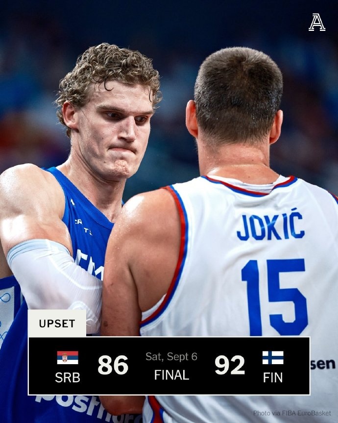 9月7日訊 男籃歐錦賽1/8決賽,塞爾維亞86-92爆冷不敵芬蘭。