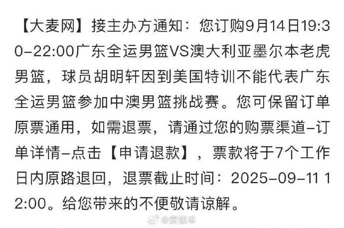 據售票網(wǎng)站透露,胡明軒因到美國特訓,將缺席本場(chǎng)比賽。