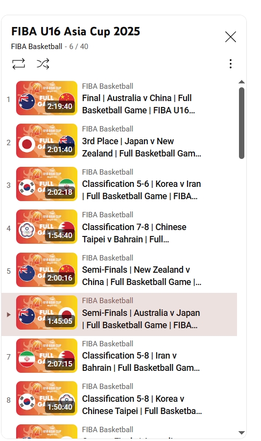 值得一提的是,本場(chǎng)比賽結束之后,FIBA官方YouTube頻道關(guān)于這場(chǎng)比賽的全場(chǎng)回放錄像卻遲遲未出,直到第二天才恢復,本屆賽事其他相關(guān)比賽的錄像都在FIBA的YouTube頻道中正常展示。