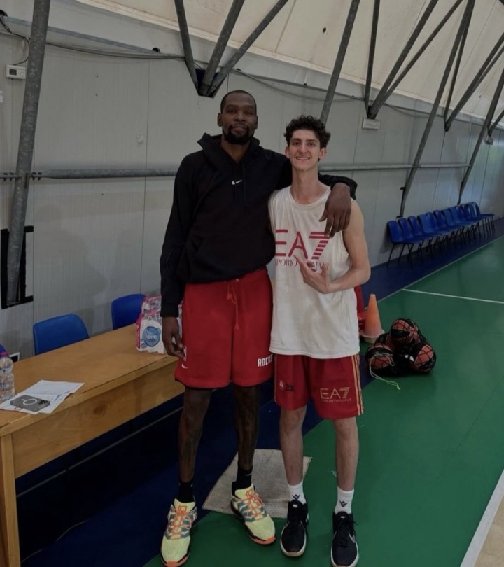 杜蘭特近日現身巴黎,在和球迷的最新合影中,已經(jīng)穿上了火箭訓練短褲!