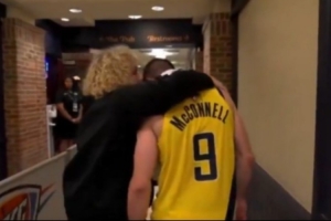 在視頻中擁抱我的人其實(shí)是我們的球員人事副總裁凱倫-阿特克森。在我為步行者效力的六個(gè)賽季里,我和凱倫建立了很好的關(guān)系。她看到我淚流滿(mǎn)面,情緒激動(dòng),便給了我一個(gè)大大的擁抱,并試圖安慰我。當電視攝像機開(kāi)始跟隨我時(shí),她出于對我的支持而本能地做出了反應。
