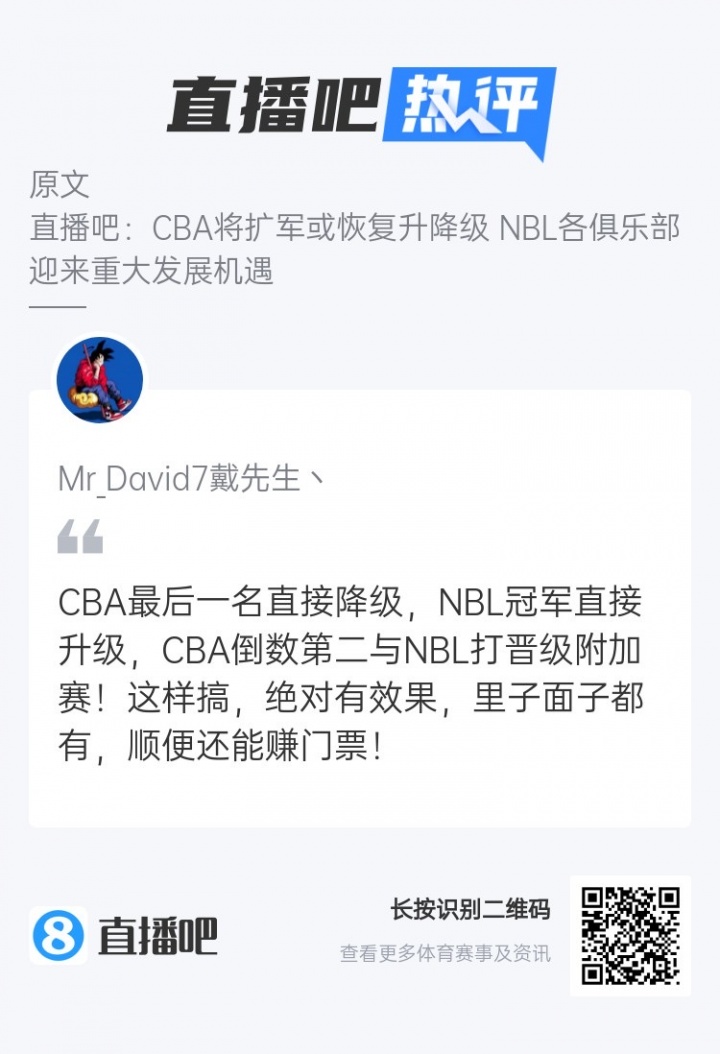 據今日早些時(shí)候的獨家報道,CBA未來(lái)或擴軍或恢復升降級,或擴軍后再恢復升降級。