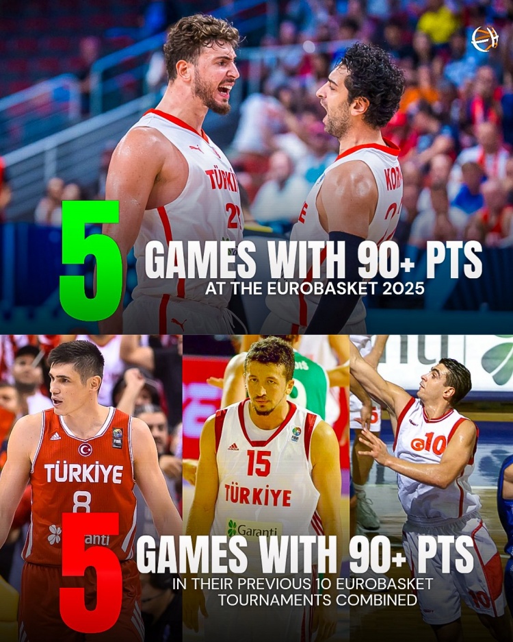 而在土耳其男籃過(guò)去十次的歐錦賽經(jīng)歷中,他們一共只有5次得分達到90分。