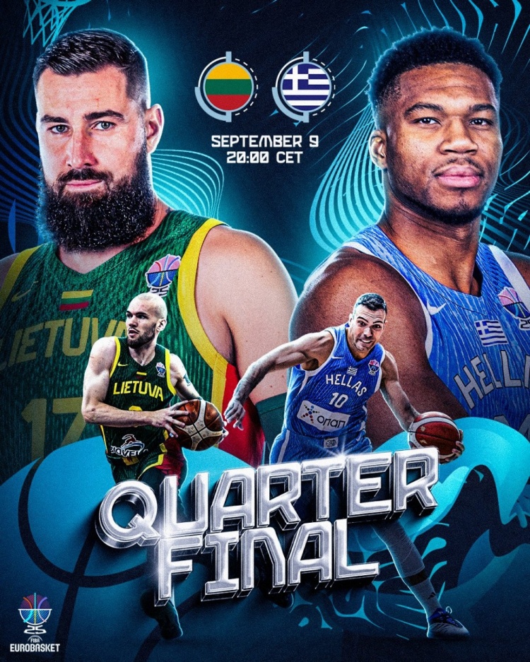 9月10日訊 男籃歐錦賽1/4決賽,希臘對陣立陶宛。