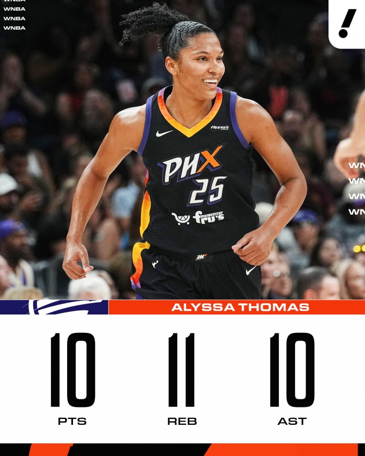 本場(chǎng)比賽,水星球星艾莉莎-托馬斯拿到10分11板10助攻的三雙數據。這樣一來(lái),她本賽季的三雙次數來(lái)到了8次,繼續刷新上個(gè)月她自己創(chuàng )造的7次的記錄。而原本的記錄是2023年她創(chuàng )造的單賽季6次。