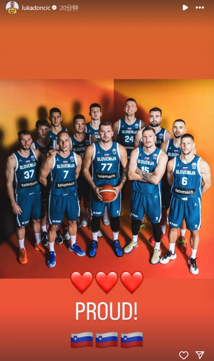 賽后,東契奇在INS曬出了全隊合照,并寫(xiě)道:“??????驕傲?!?/p>
